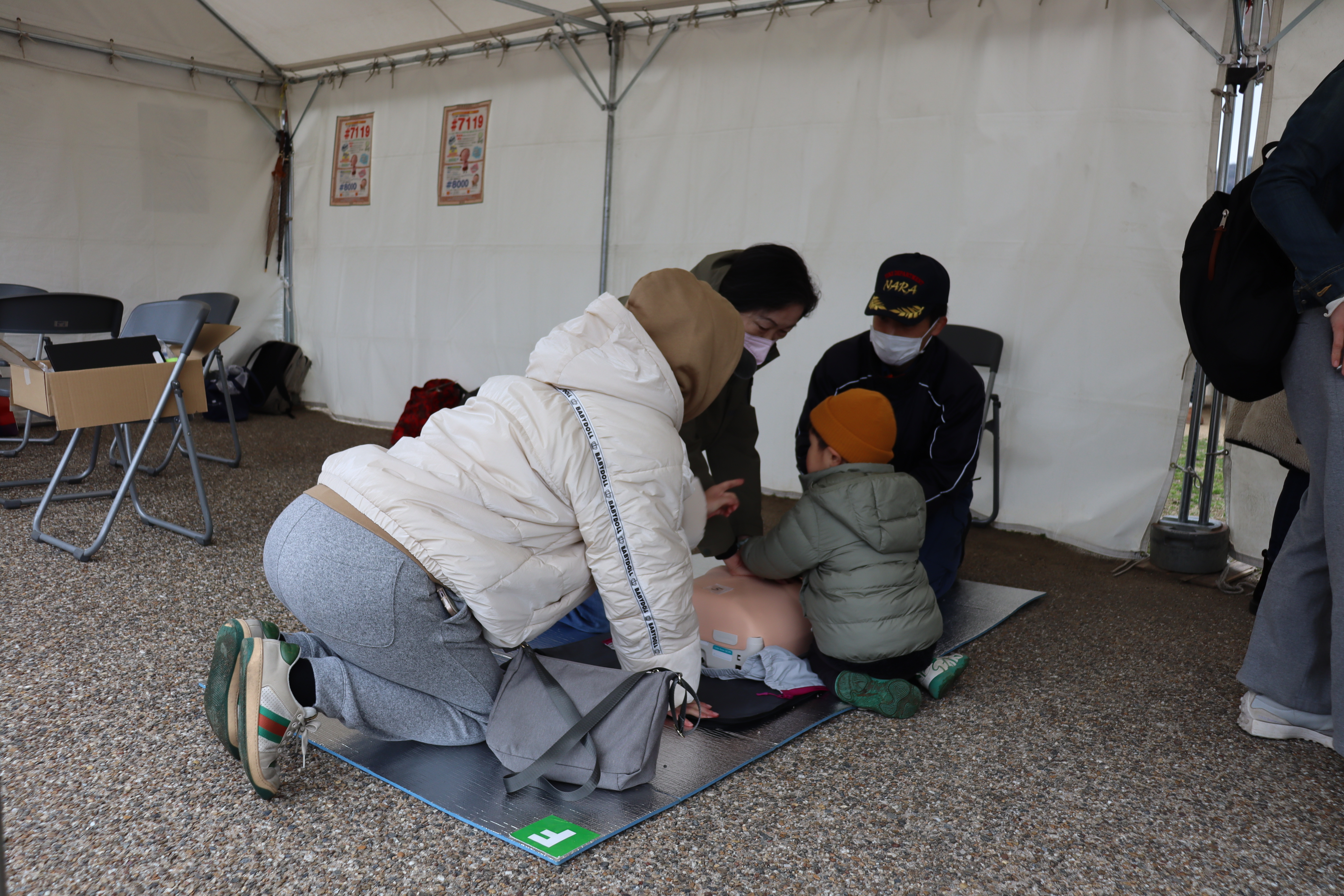 ※ 応急手当体験ブースに救護所が併設されていますので、会場内で気分不良やケガ等発生すれば、救護所までお越しいただくか、お近くの消防職員へ連絡願います。