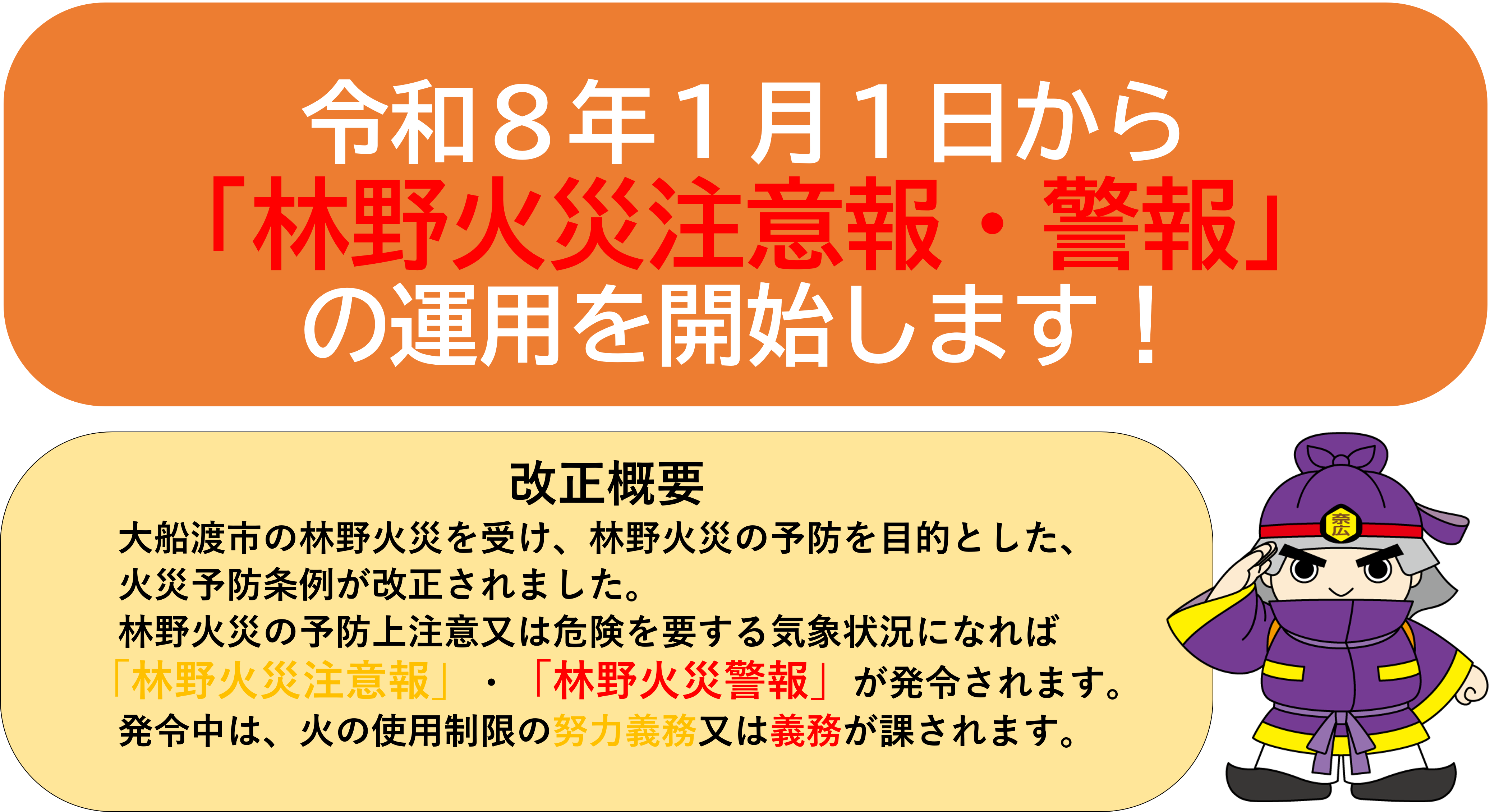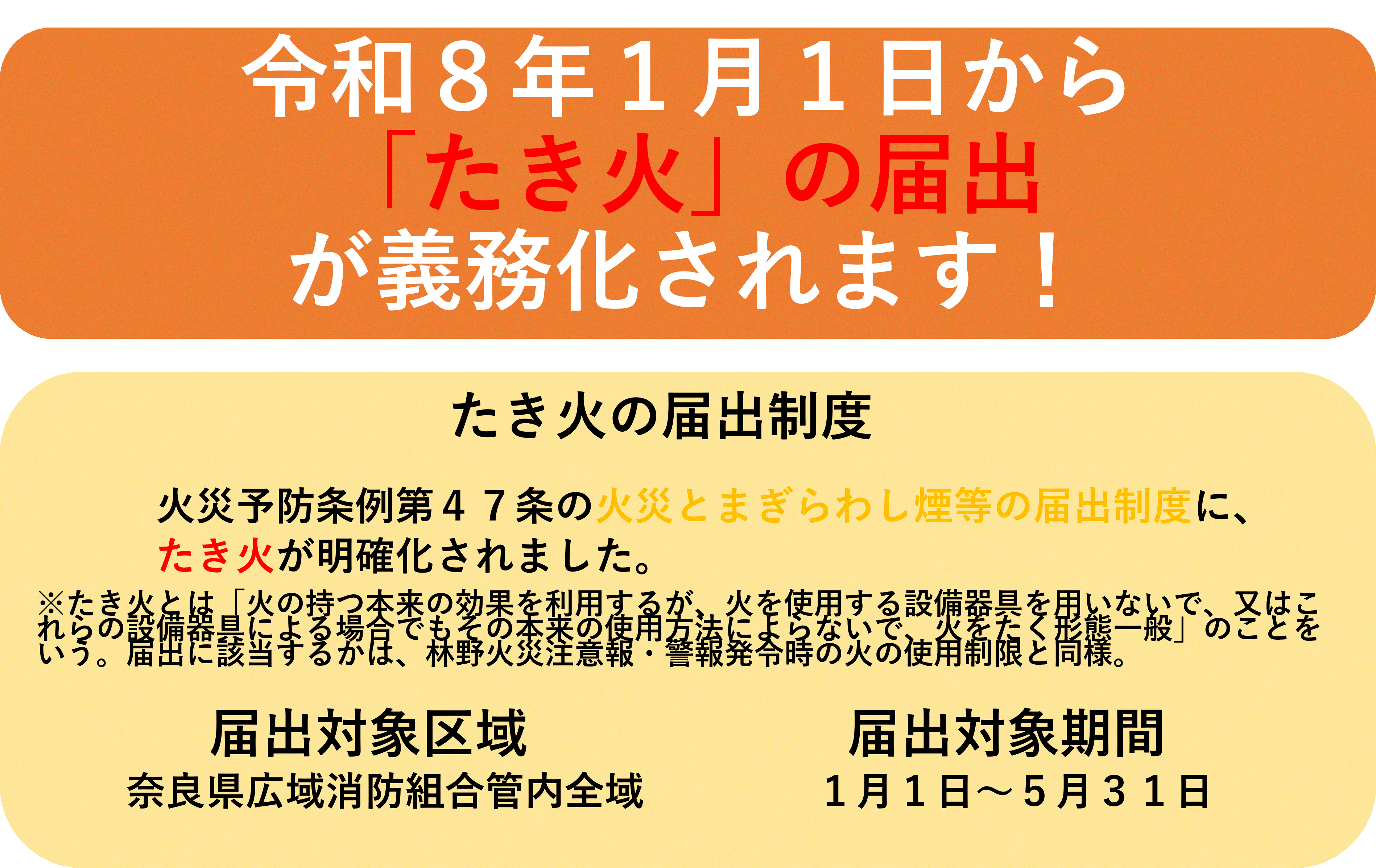 それに伴って、奈良県広域消防組合火災予防条例の一部を改正する条例および奈良県広域消防組合火災予防規則の一部を改正する規則が、令和7年12月11日付けで公布され、令和8年1月1日から施行されることになりましたのでお知らせします。