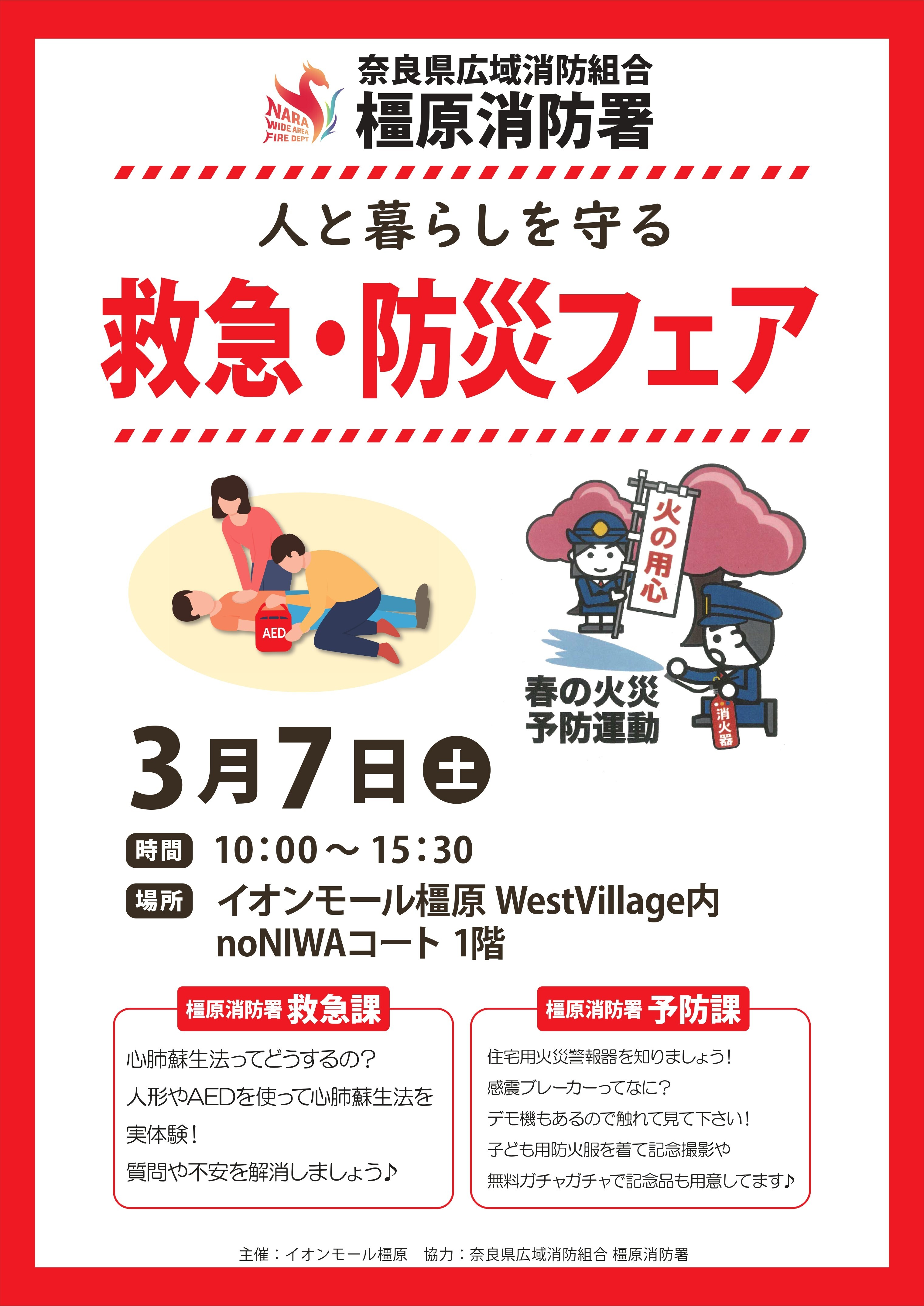 3月7日(土)イオンモール橿原WestVillageで『救急・防災フェア』を開催します!